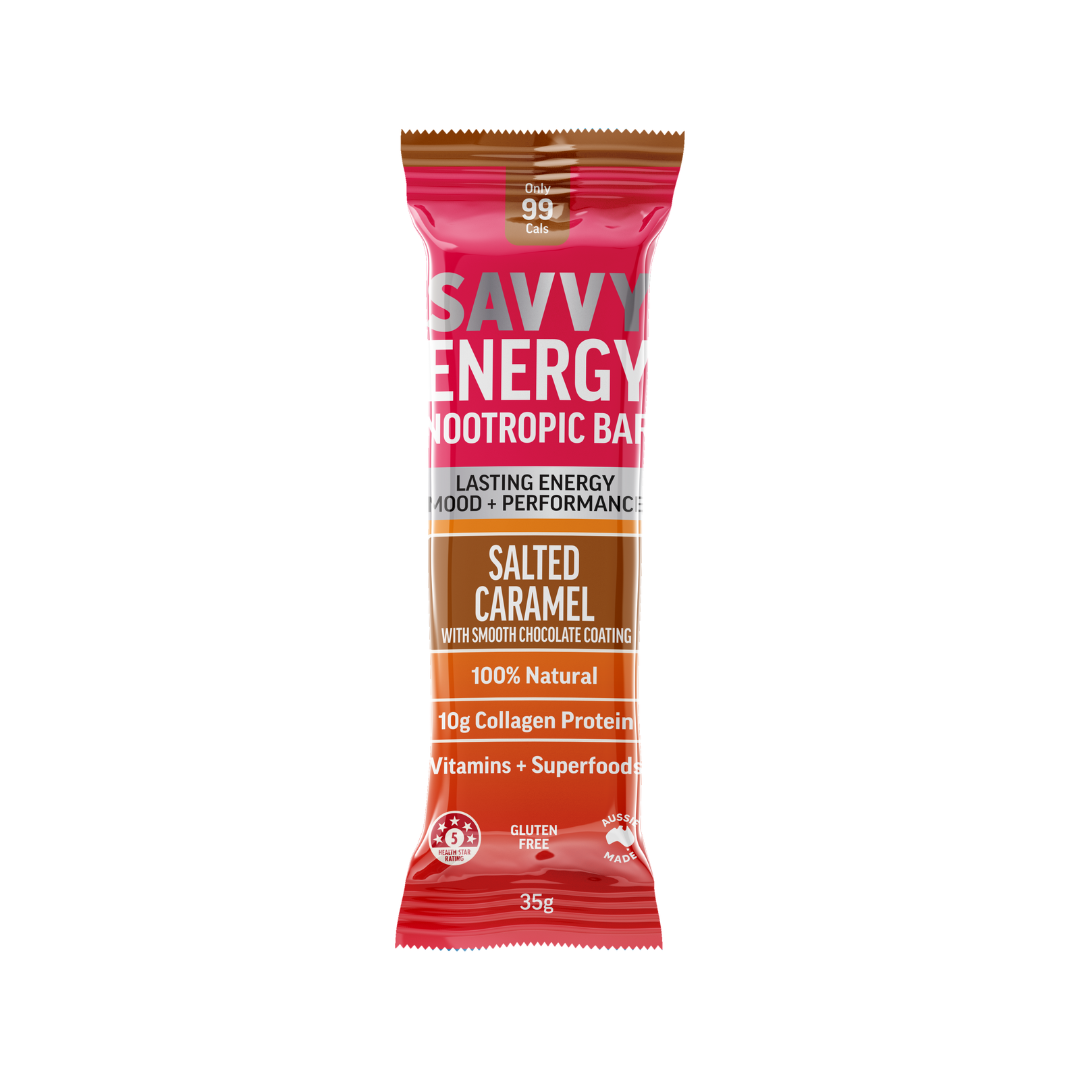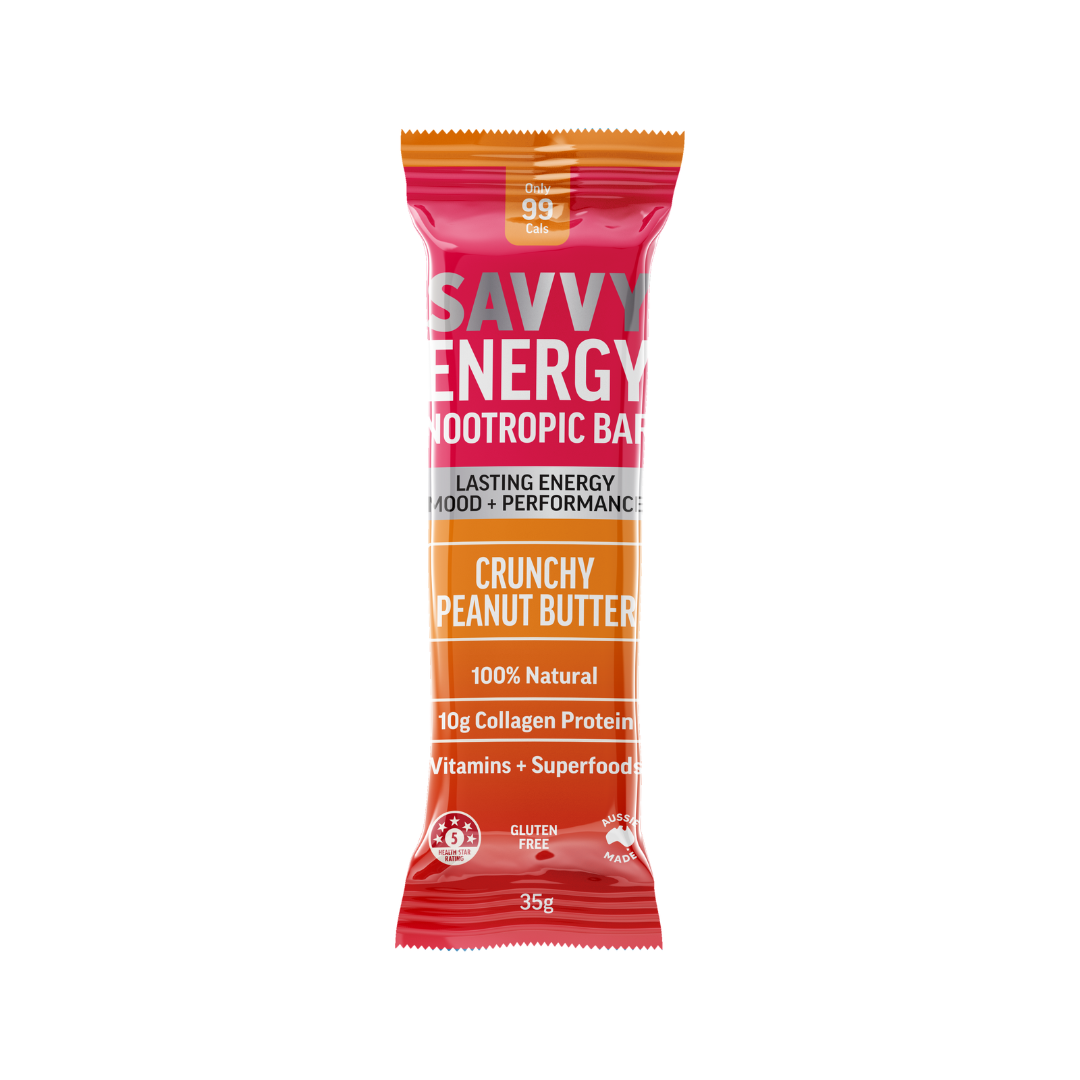 Savvy Energy+ Nootropic BarsAustralia’s best bar for natural energy and performance – are a 5-star health-rated snack created by Australian nutritionists to fuel your body, mind, and mood all day long.
