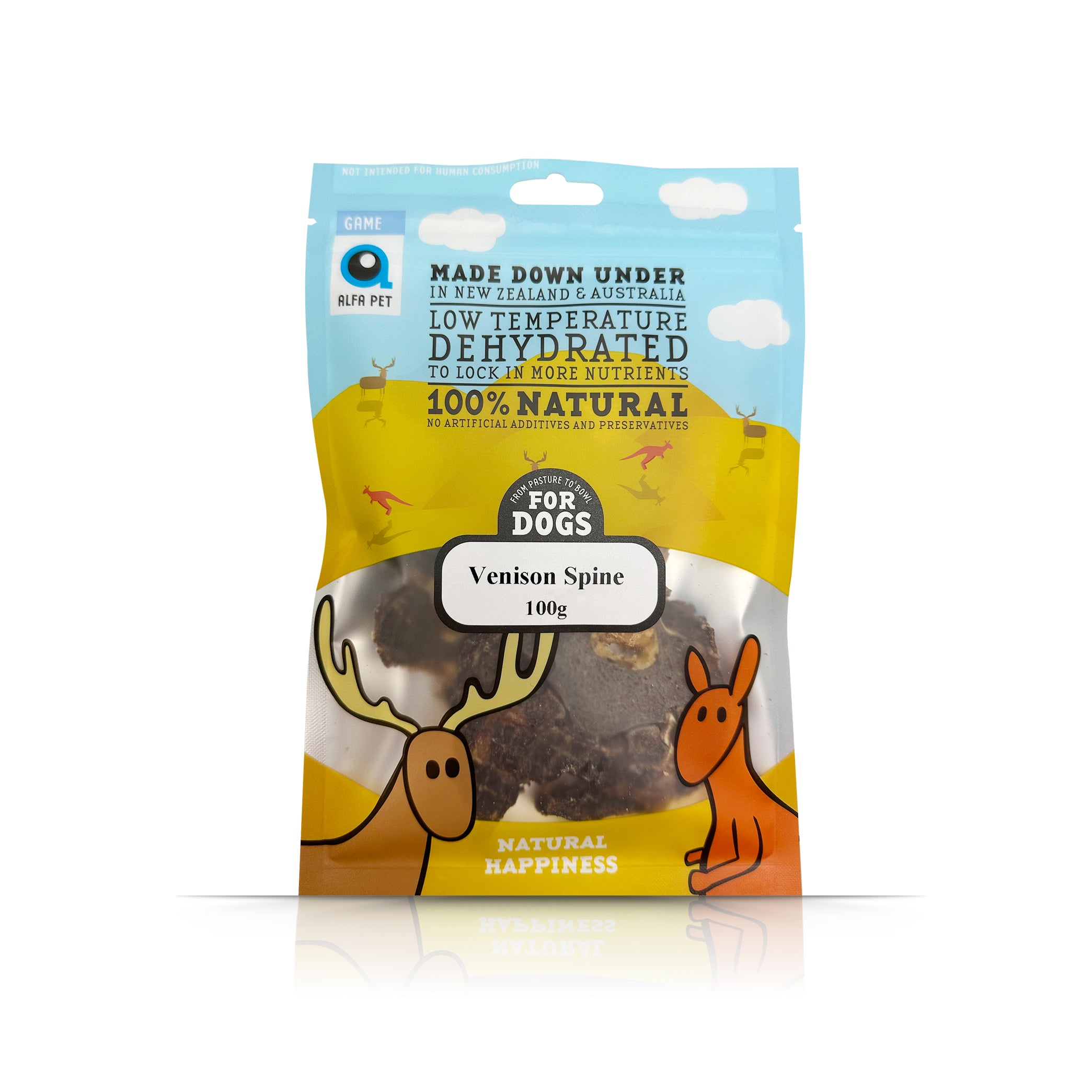 Our Alfa Pet Venison Spine is simply 100% New Zealand wild deer. Venison Spine has a soft honey-comb structure, meaning they collapse around each tooth as they are crunched and chewed, helping to scrape tartar from the teeth.